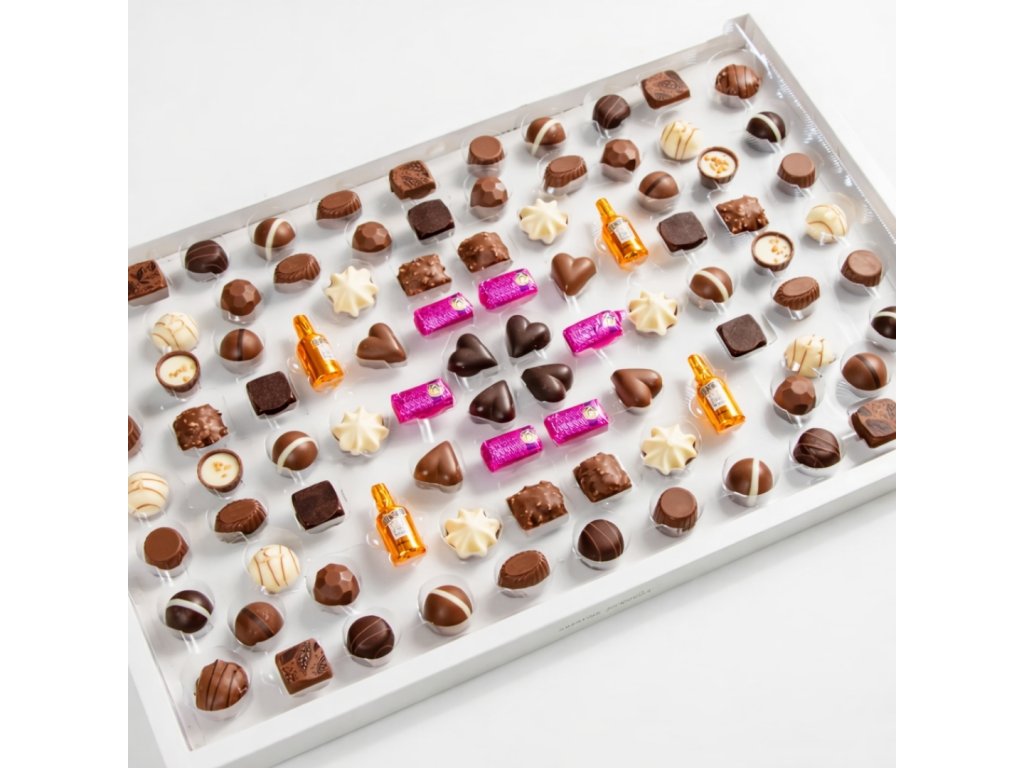 Uvnitř najdeš pestrý mix, kde si vybere úplně každý. Máš chuť na tmavou čokoládu, mléčnou klasiku, nebo bílou variantu? Je tam všechno! Těšit se můžeš na těchto 18 vyladěných kousků: