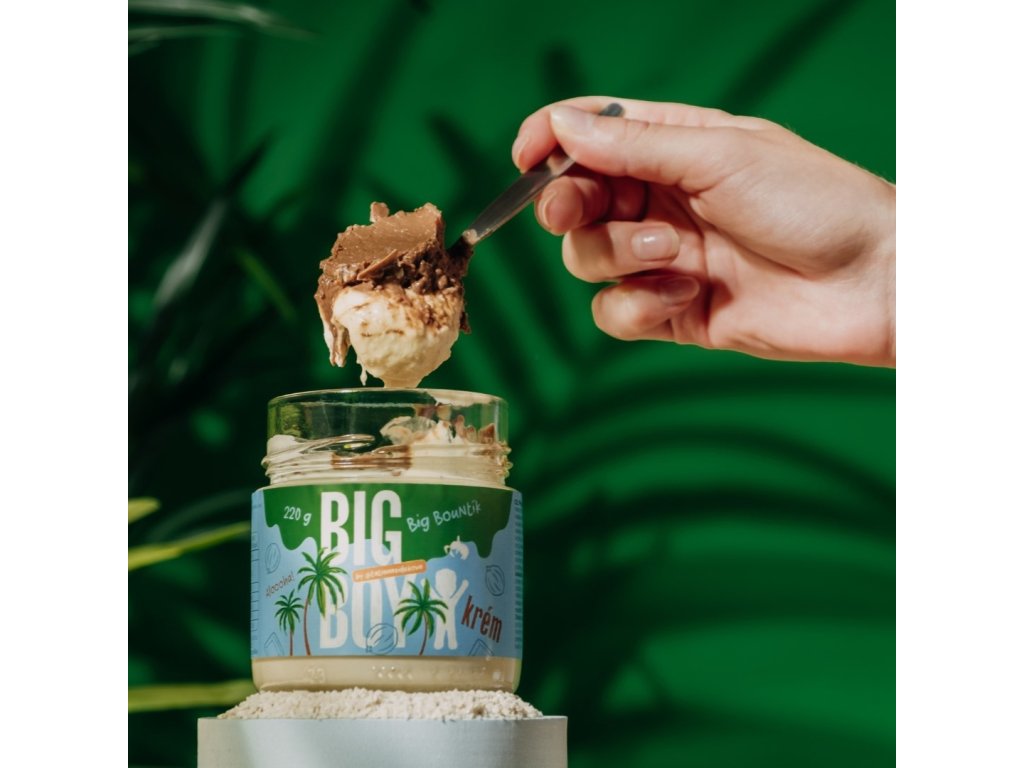 Big Bountík spojuje jemný kokos, křupavé mandle a poctivou mléčnou čokoládu v dokonale vyvážený krém. Jeho tropická chuť tě okamžitě přenese na pláž – ať už venku prší, nebo svítí slunce. Krémová konzistence se doslova rozplývá na jazyku a je jen na tobě, jestli si ho namažeš na pečivo, přidáš do oblíbené kaše, nebo si dopřeješ rovnou lžičku ze skleničky.
