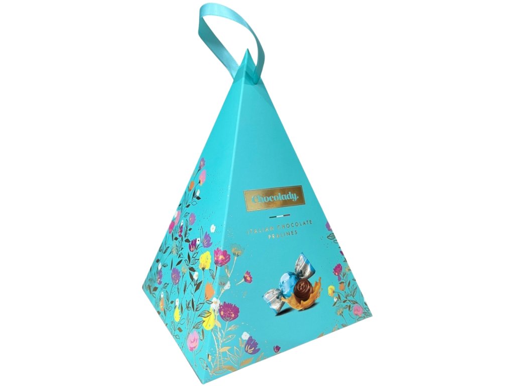 Modrozelená pyramida vypadá jinak než klasické bonboniéry a hodí se jako zajímavý dárek, ale taky si ji můžeš nechat pro sebe. Je to na tobě!