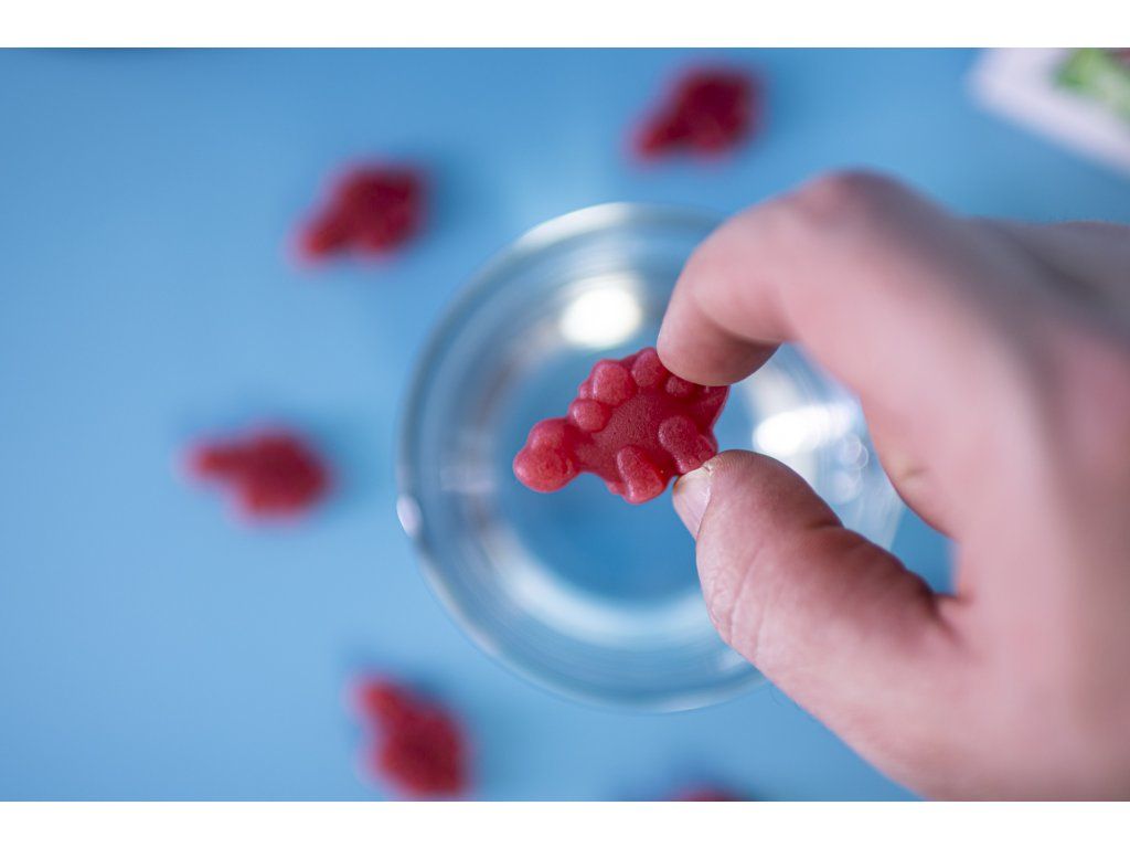 Složení: cukr, glukozový sirup, voda, želatina, koncentrovaná bílá hroznová šťáva, rostlinný výtažek (dýně, ředkev, rajče, jablko, bezinka) příchutě, extrakt z bílého čaje 1%, přírodní ovocné sladidlo, karnaubský vosk, koncentrovaná jablečná šťáva, koncentrovaná meruňková šťáva, koncentrovaná hrušková šťáva.