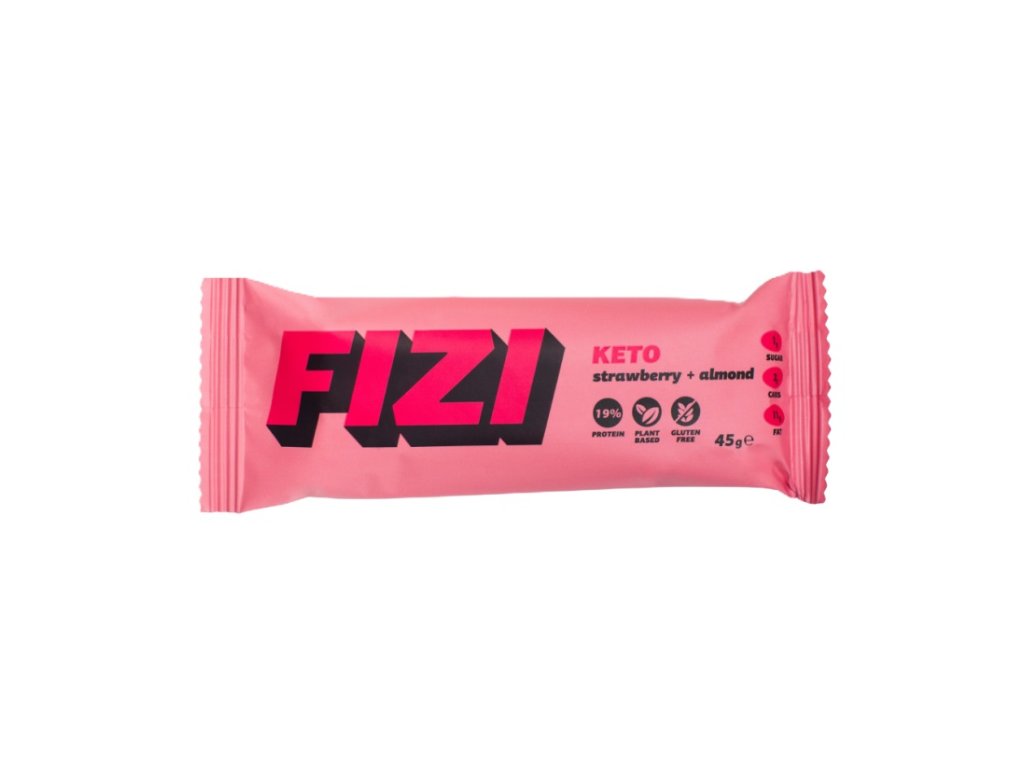FIZI Keto proteinová tyčinka jahoda a mandle 45 g DMT 09/2025