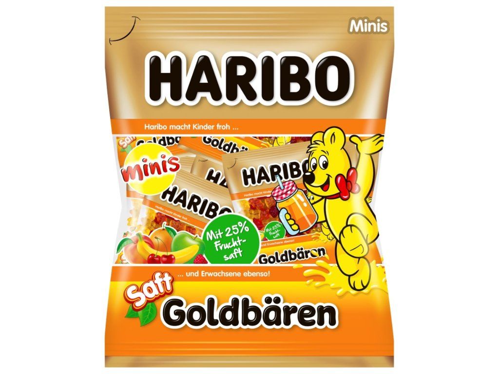 HARIBO Saft Goldbären Minis - Zlatí želé medvídci s ovocnou šťávou minisáčky 220 g