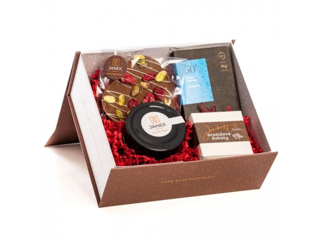 Tahle magnetická krabice od JANKA, nabitá čokoládovými dobrotami, je ideální ochutnávkový box, ve kterém najdeš od každého něco – takže si můžeš vychutnat rozmanitost jejich nejlepších produktů.