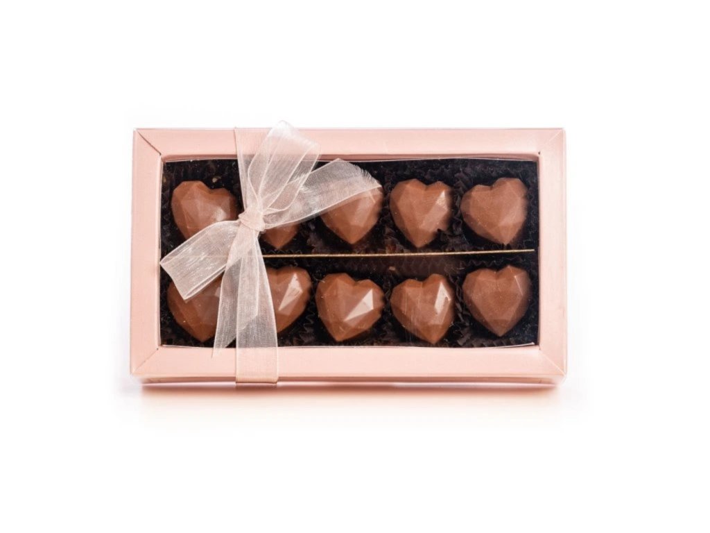 JANEK Růžová krabička bean to bar pralinek od srdce 10 ks POŠKOZENÉ