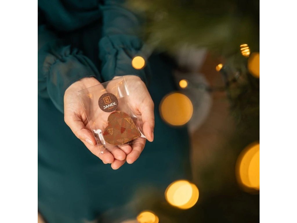 JANEK Mléčné čokoládové srdíčko s vánočním potiskem 14 g