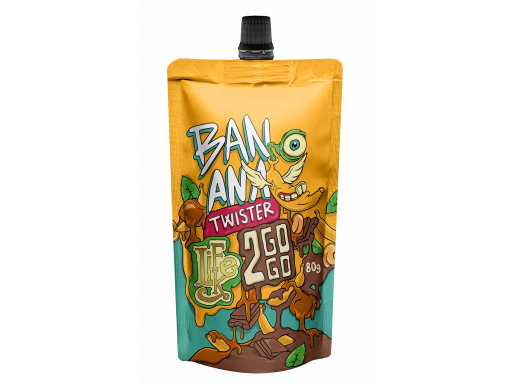 Složení: 61% pražené kešu ořechy, 21% karamelová čokoláda (kakaové máslo, sušené mléko, sušená syrovátka, karamelizovaný cukr, sójový lecitin, vanilka bourbon), 10% kokosový olej, 8% banán sušený mrazem