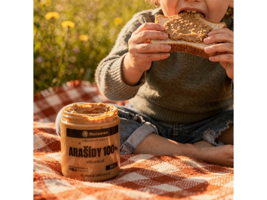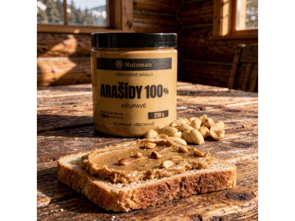Základem jsou poctivé arašídy, které jsme upražili dozlatova. Část z nich jsme namleli na hedvábně jemný krém a tu druhou jsme nasekali na poctivé kousky, které v něm zůstaly schované. Výsledkem je tahle zlatohnědá dobrota, která na teplé kaši krásně povolí, ale díky oříškům má pořád ten správný křup.