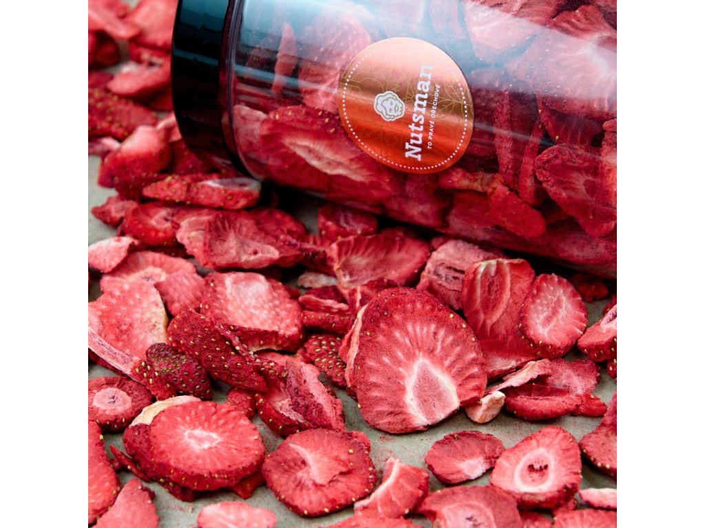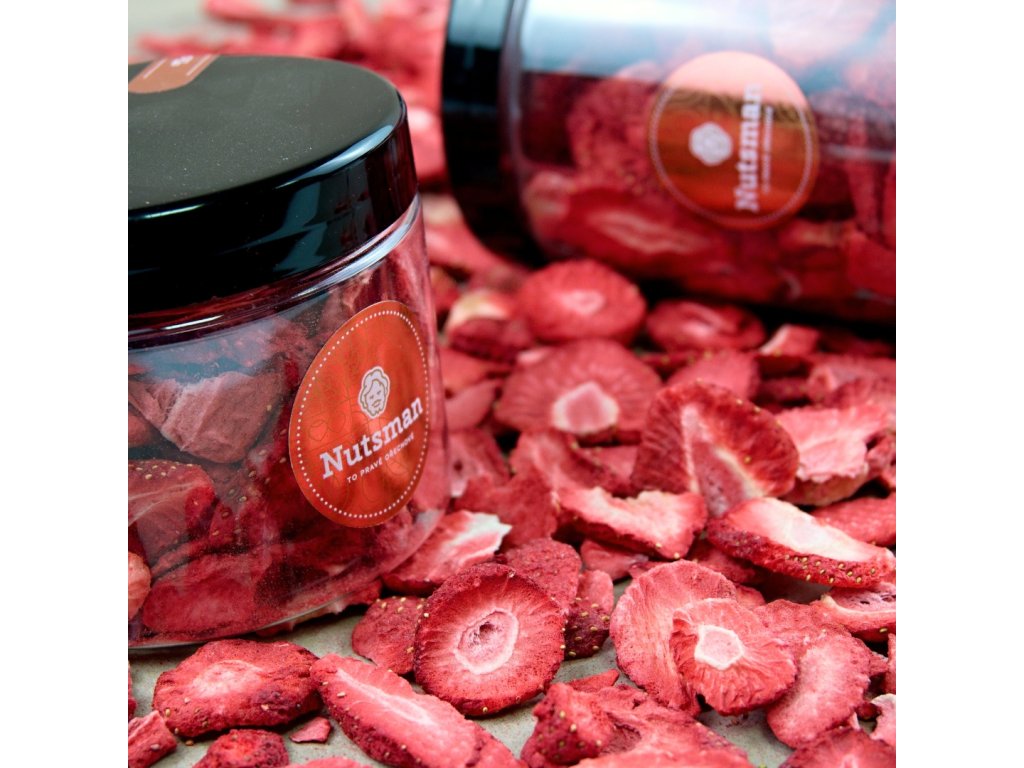 Možná to slovo zní složitě, ale princip je geniálně jednoduchý. Představ si, že jahody nakrájíš na tenké plátky, zmrazíš na extrémně nízkou teplotu a pak jim pomalu odčerpáš vodu. Ne horkem, ale šetrně, ve vakuu. Díky tomu si zachovají to, co na nich milujeme nejvíc – chuť, vůni, barvu a vitamíny. Je to jako kouzlo – jen vědecky ověřené.