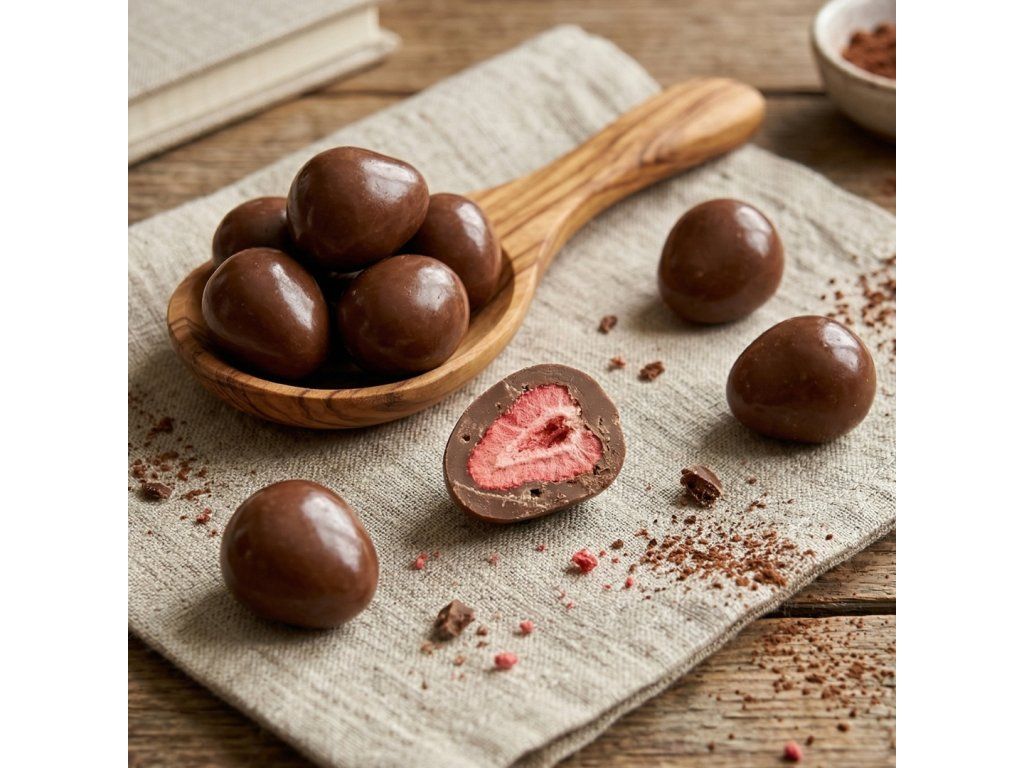 Jsou kombinace, které prostě fungují odjakživa. Jahody a čokoláda k sobě patří jako léto a sluneční brýle – nikdo se nad tím nepozastavuje, protože to tak prostě je. A u těchto lyofilizovaných jahod to platí dvojnásob.