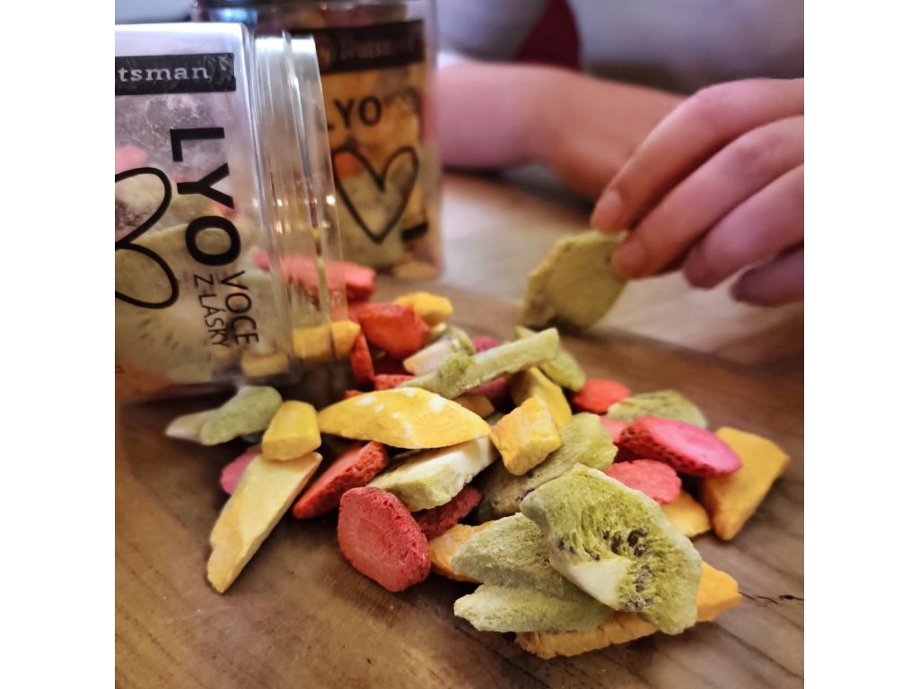 Vždycky mě fascinovalo, kolik radosti dokáže udělat trocha barev a poctivá chuť ovoce. Právě proto jsem pro letošního Valentýna namíchal tuhle směs lyo jahod, manga a kiwi a schoval ji do velké průhledné dózy. Chtěl jsem, aby bylo hned vidět tu radost a barvy, ale hlavně jsem věděl, že u jednoho kousku se prostě nedá skončit. V dóze mají tyhle křehké kousky svůj klid a vám budou dělat radost pokaždé, když ji společně otevřete. Ovoce v ní zůstane pořád stejně křehké, jako byste ho právě načali.