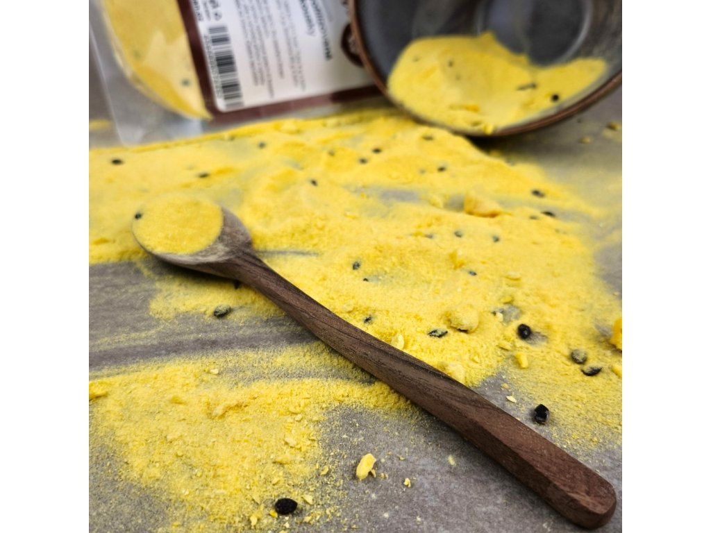 Výsledkem je jemný prášek plný chuti a křupavé kousky, které jsme vytvořili pro maximální všestrannost v kuchyni. Tohle není žádný zbytek – je to čistá esence maracuji, která ti umožní dochutit a ozdobit cokoliv. Je to intenzivní, sladko-kyselá a plná exotiky. A co je nejlepší? Žádný přidaný cukr, žádné konzervanty – jen 100% čisté ovoce.