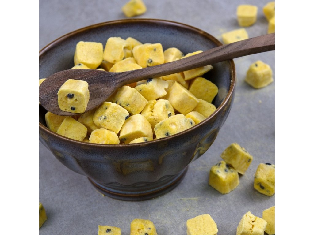 Výsledkem jsou neskutečně křupavé kousky i se semínky, které se na jazyku rozplynou a chutnají jako čerstvá, zralá mučenka. Je to intenzivní, sladko-kyselá a plná exotiky. A co je nejlepší? Žádný přidaný cukr, žádné konzervanty – jen 100% čisté ovoce v té nejlepší podobě.