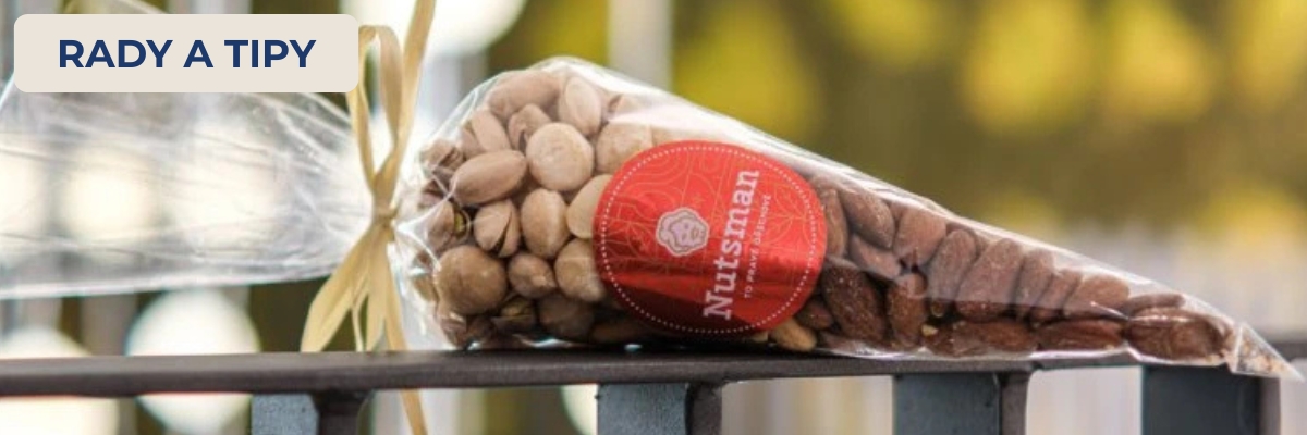 - Tři fantastické druhy snacků: uzené mandle, solené pistácie a náš tajný trumf – Párty směs 2025.