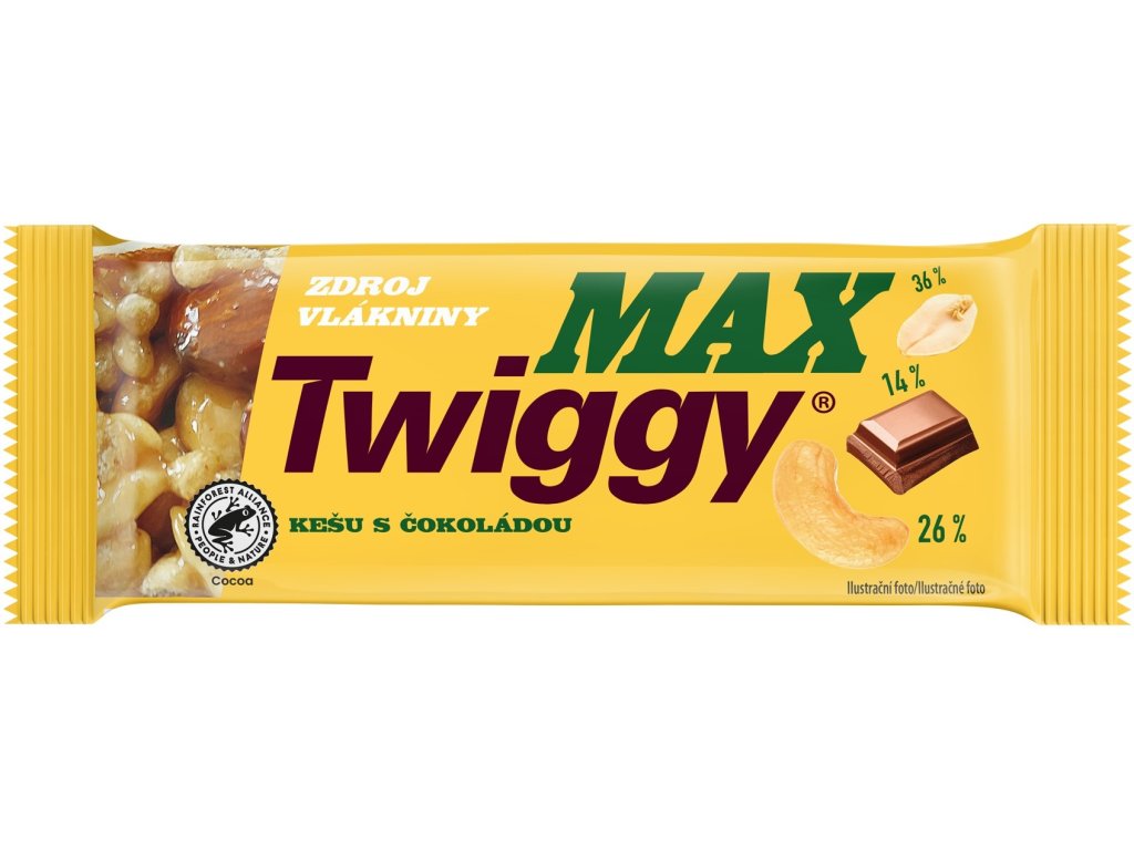 Twiggy MAX Tyčinka s arašídy a kešu ořechy polomáčená v hořké čokoládě 35 g