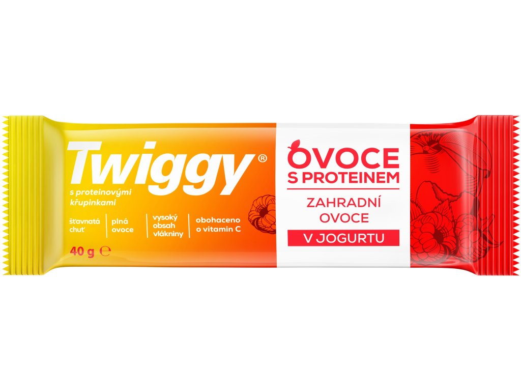 Twiggy Tyčinka se zahradními plody a proteinovými křupinkami v jogurtové polevě 40 g